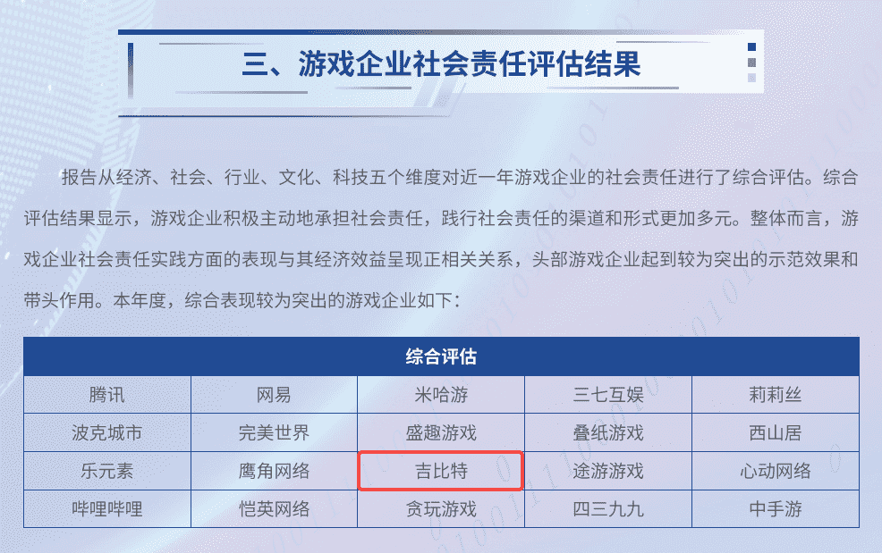 7月3日,,,由中國音像與數(shù)字出版協(xié)會指導,,,北京市西城區(qū)人民政府主辦的“2024游戲責任論壇”在北京舉行。。。。論壇上,,,人民網(wǎng)輿情數(shù)據(jù)中心、、人民靈境研究院、、、靈境 · 游戲?qū)嶒炇衣?lián)合發(fā)布了《2023-2024游戲企業(yè)社會責任報告》(以下簡稱“《報告》”),,,,公布了游戲企業(yè)社會責任評估結(jié)果。。。廈門一競技網(wǎng)絡(luò)技術(shù)股份有限公司(以下簡稱“一競技”或“公司”)獲評“2023-2024年度中國游戲企業(yè)社會責任綜合表現(xiàn)較為突出企業(yè)”。。。這是繼2020年以來,,,,一競技第五次入圍人民網(wǎng)中國游戲企業(yè)社會責任相關(guān)榮譽榜單。。