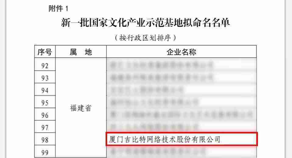 3月12日,,,,文化和旅游部發(fā)布了《關(guān)于國(guó)家文化產(chǎn)業(yè)示范基地評(píng)選與復(fù)核結(jié)果的公示》,,,,廈門一競(jìng)技網(wǎng)絡(luò)技術(shù)股份有限公司(以下簡(jiǎn)稱“一競(jìng)技”或“公司”)成功入圍新一批國(guó)家文化產(chǎn)業(yè)示范基地?cái)M命名名單。。。